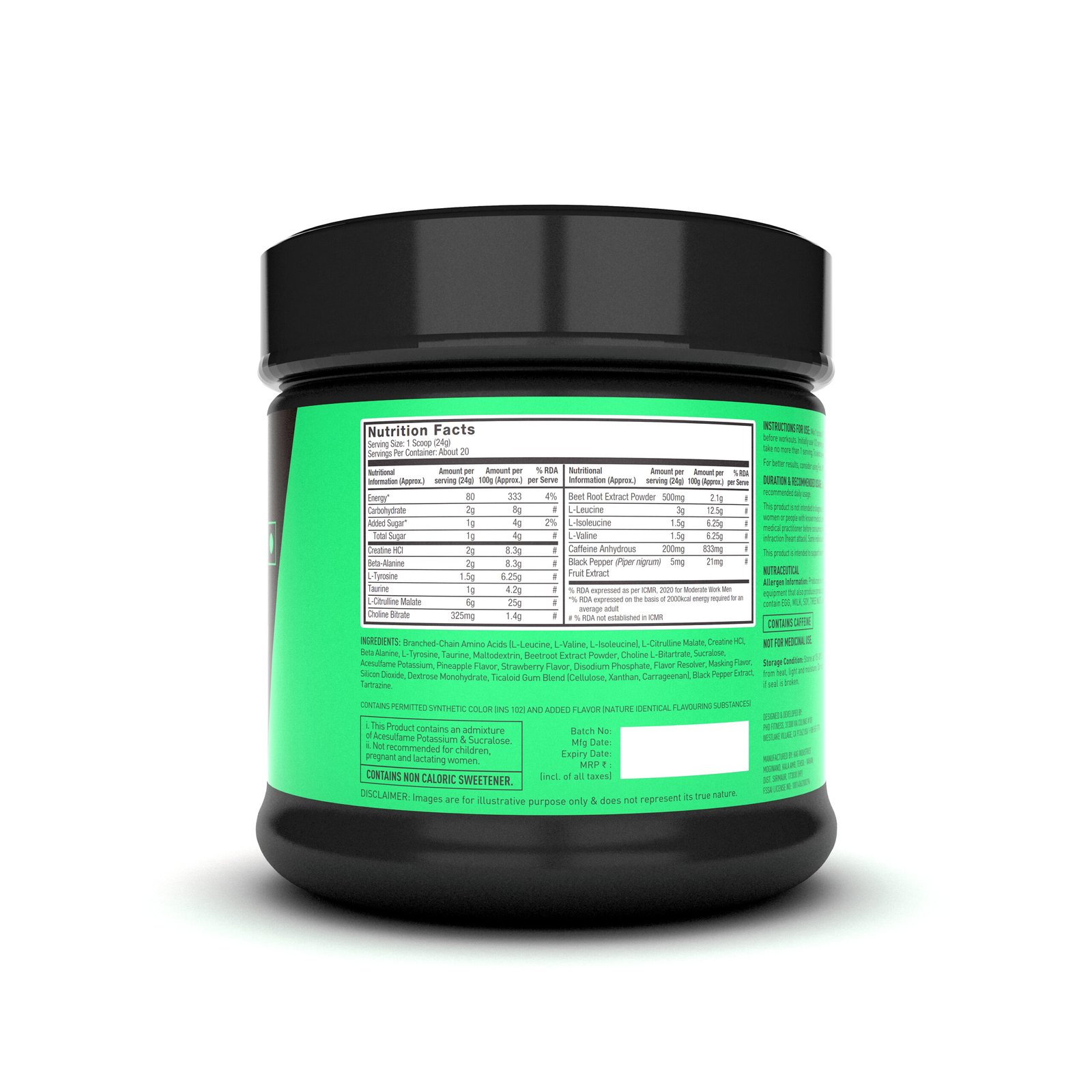 - Enhanced strength endurance- Creatine HCl, beta-alanine and Betaine help fuel your muscles for more strength and stamina during workouts. The BCAAs (branched-chain amino acids) found in pre JYM provide a direct source of energy during your workout.