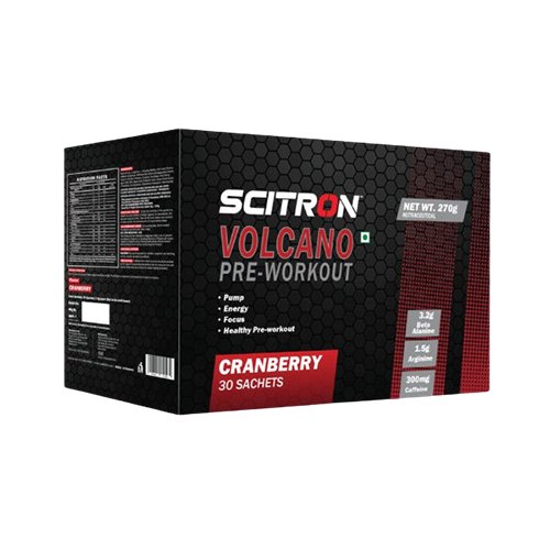 Scitron VOLCANO Pre-Workout contains ingredients in accordance with their functions in the Pre-Workout formula. Addition of Citrulline Malate & L-Arginine, amino acid & are precursors of nitric oxide, responsible for vasodilation.